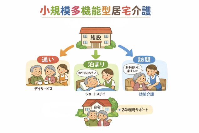 私たちの施設は「小規模多機能型居宅介護(小多機)」というサービスです。